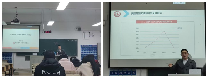 讲座开始,琚四化博士首先提出了盲文自身的局限、盲文教学问题和对辅助技术的过度依赖直接制约盲人的盲文读写的问题。之后,分析美国盲文读写危机,总结提出对我国盲文读写的启示。比如,盲文与其他读写媒介并不冲突,可运用多感官、多渠道辅助盲文读写;需及时跟进研究盲文发展情况和完善盲文本身;改进盲文教学,帮助盲生树立终生学习观念,等。