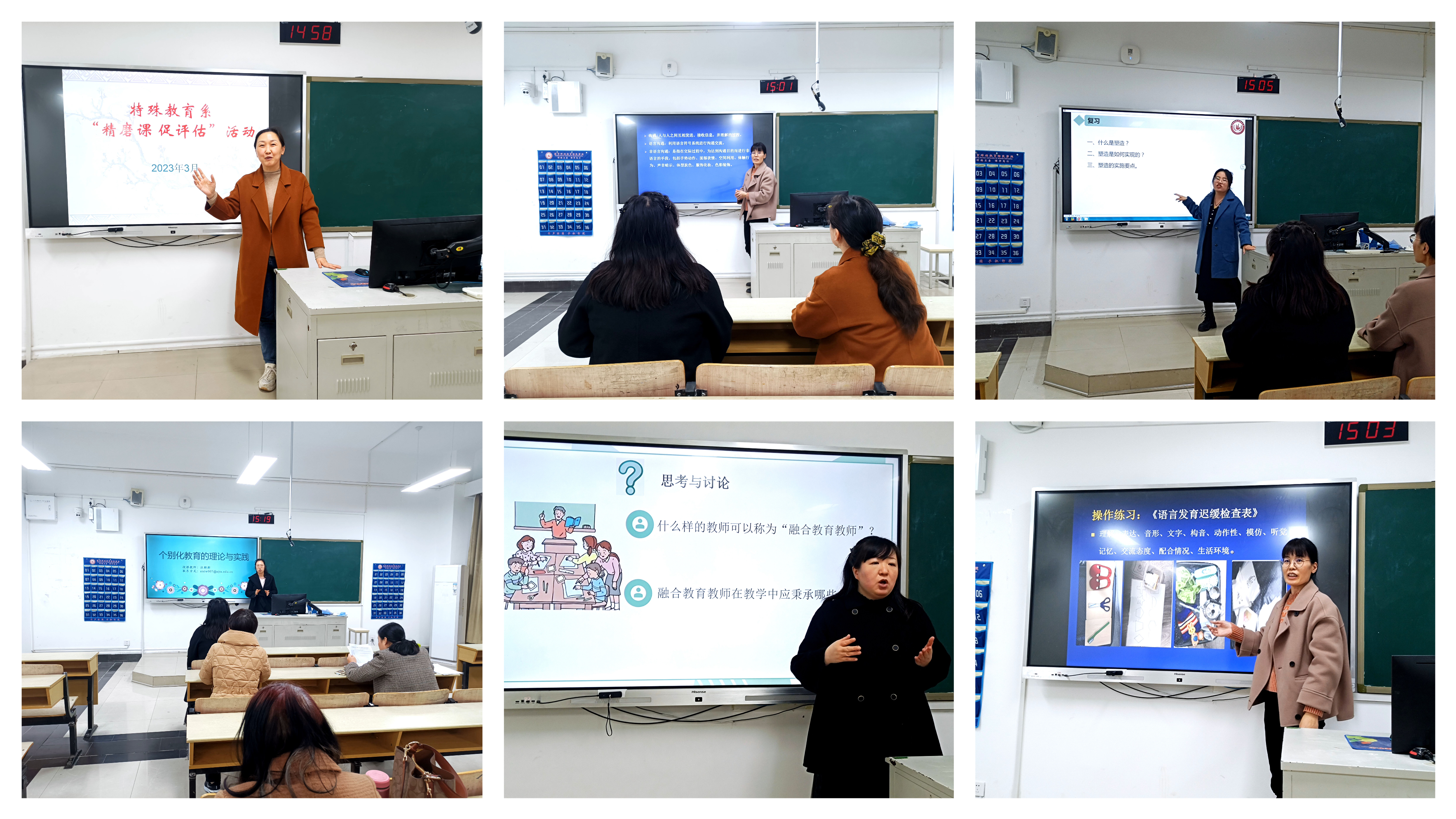 为继续提高教师课堂教学能力,提高课堂教学质量,3月22日下午,伟德体育第二场“精磨课 促评估”活动继续进行,由特殊教育系主任陈琳博士组织。本次试讲活动由于参与人数较多,特殊教育系分为两个组进行,试讲场地有两个教室。