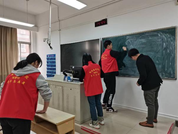 活动开始之前,同学们积极搜索相关的清理视频,总结清理黑板的小技巧。每次活动同学们都按时到达指定教室,有条不紊地分配志愿任务,对教室进行了全面的清洁,努力为同学们营造一个干净整洁的学习环境。协会指导教师张伟锋博士指导并参与本次志愿服务。
