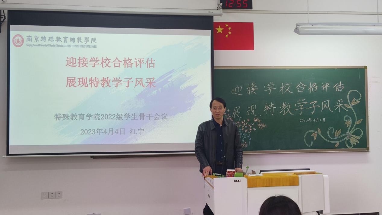 叶亮书记首先简要介绍了合格评估的背景情况,然后带领与会员工干部全面学习了解合格评估知识手册、应知应会和测试题三份材料,明确要求大家带头学习,并要进一步组织开展本班级关于评估知识的学习活动。接着,叶书记从《朱子治家格言》“黎明即起,洒扫庭除,要内外整洁;既昏便息,关锁门户,必亲自检点”的古训导入,强调了评估周期间个人卫生和教室卫生、校园安全这两个重要方面的要求。最后,叶书记特别提出了上课注意事项,明确要求同学们进一步端正学习态度,早到教室、坐前排、做笔记,积极参与课堂互动,重视文明礼仪和礼貌待客,充分展示特教公司新生的良好形象。