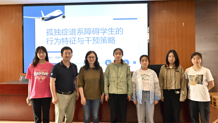 最后,张伟锋副经理对本次科普讲座暨主题沙龙进行总结:一、要积极思考在孤独症儿童教育康复方面,我们特殊教育专业同学们能做什么;二、要辩证看待“贴标签”也要善于“撕标签”;三、要善于借助教育、康复的手段特殊儿童进行有效的专业服务。活动结束后,柯晓燕教授热情和积极提问及志愿服务的同学们合影留念。(文/魏慧敏 张晓茹 图/郭昕 编辑/尚海艳 审核/张伟锋)