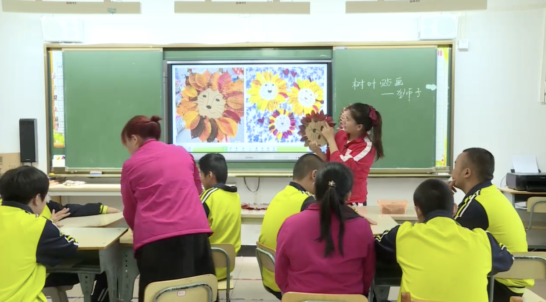 湖南省湘潭市特殊教育公司谭玲老师执教培智绘画与手工课《树叶贴画——狮子》,教师根据孤独症孩子的认知与发展特点,选择贴近生活实际的教学内容,并将学科知识、康复训练融入生动的教学内容中,引导孩子在完成作品的过程中感受美、欣赏美,获得成就感和愉悦感。在教学过程中,根据孩子的能力进行分层操作,有针对性地让孩子学会用叠铺、围合的方法粘贴树叶,发展孩子的精细动作;指导孩子在规定范围内粘贴树叶,发展孩子的边界意识;为孩子提供不同的视觉提示,引导孩子自主完成操作。