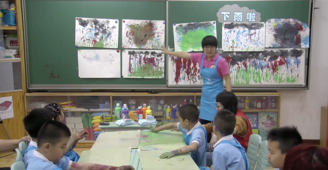 接着,优秀的一线教师进行示范观摩课展示。北京市健翔公司刘杰老师执教培智绘画与手工课《下雨啦》,教师将教学内容分成多个环节,以听觉导入,让员工通过多种感官感受,并通过线条、色彩表现阴天、下雨以及小草生长的画面,最后进行作品展示和总结评价。讲解、练习穿插进行,有效保持员工的注意力维持。同时利用猜一猜小游戏、代币等多种小活动,维持员工的注意力,提升参与主动性和积极性。