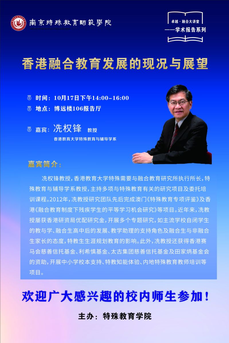 卓越·融合大讲堂学术报告系列——香港融合教育发展的现况与展望