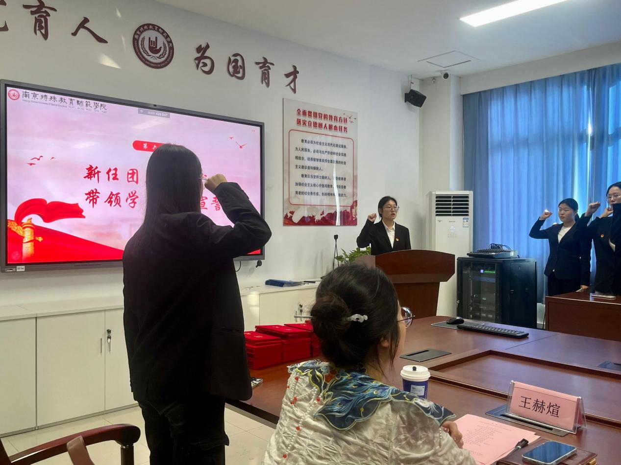 东风浩荡征帆满,豪情满怀谱新篇。新任团总支副书记王雯婕同学带领员工干部宣誓,积极表示要争做能吃苦、肯奋斗、有理想、敢担当的新时代特教先锋,为伟德体育的高质量发展贡献青春力量!