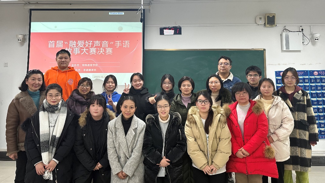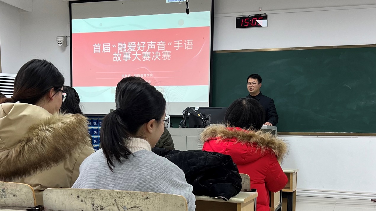 为了促进残疾人公共文化服务标准化、推动国家通用手语推广等信息无障碍建设,提高公司员工手语表达能力,创建博爱校园文化。伟德体育于 2023 年12 月至 20月下午在博雅楼2407教室举办首届“融爱好声音”手语故事大赛。公司党总支副书记李鹏、手翻译系全体教师、手语翻译专业员工参会,手语翻译系系主任韩梅老师主持比赛活动。