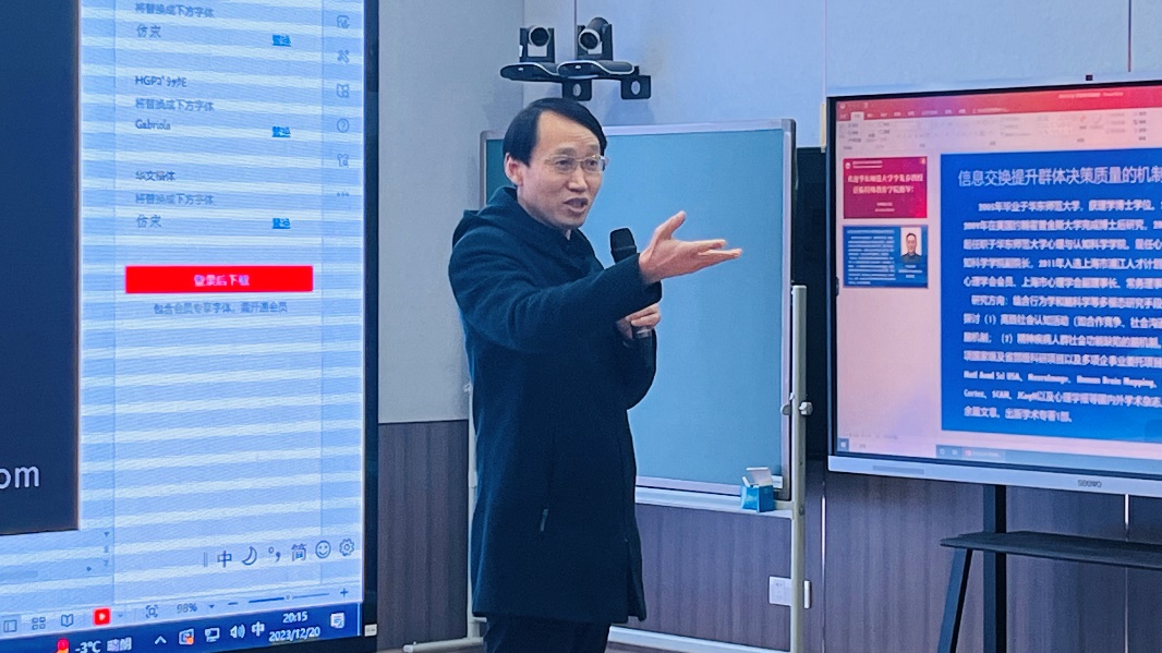 12月20日晚,李先春教授为现场师生带来题为《信息交换提升群体决策质量的机制探讨》的学术讲座。李教授在讲座中回顾了其研究组近期相关的研究工作,以基于脑电或近红外成像的超扫描技术,探讨不同方式的信息交换情境下的群体决策过程,发现脑间活动同步能很好地刻画信息交换提升群体决策绩效的有效客观标记物,并提出人际互动下的群体决策认知与脑机制模型。李先春教授的讲座生动有趣地阐明了课题研究的逻辑,激发了与会者的现场热烈讨论。李先春教授热情解答了师生的提问,并分享了有关脑科学研究的最新学术前沿信息。叶亮书记在总结中对心理学系员工的未来发展提出了殷切期望和明确的学习生涯规划指导。