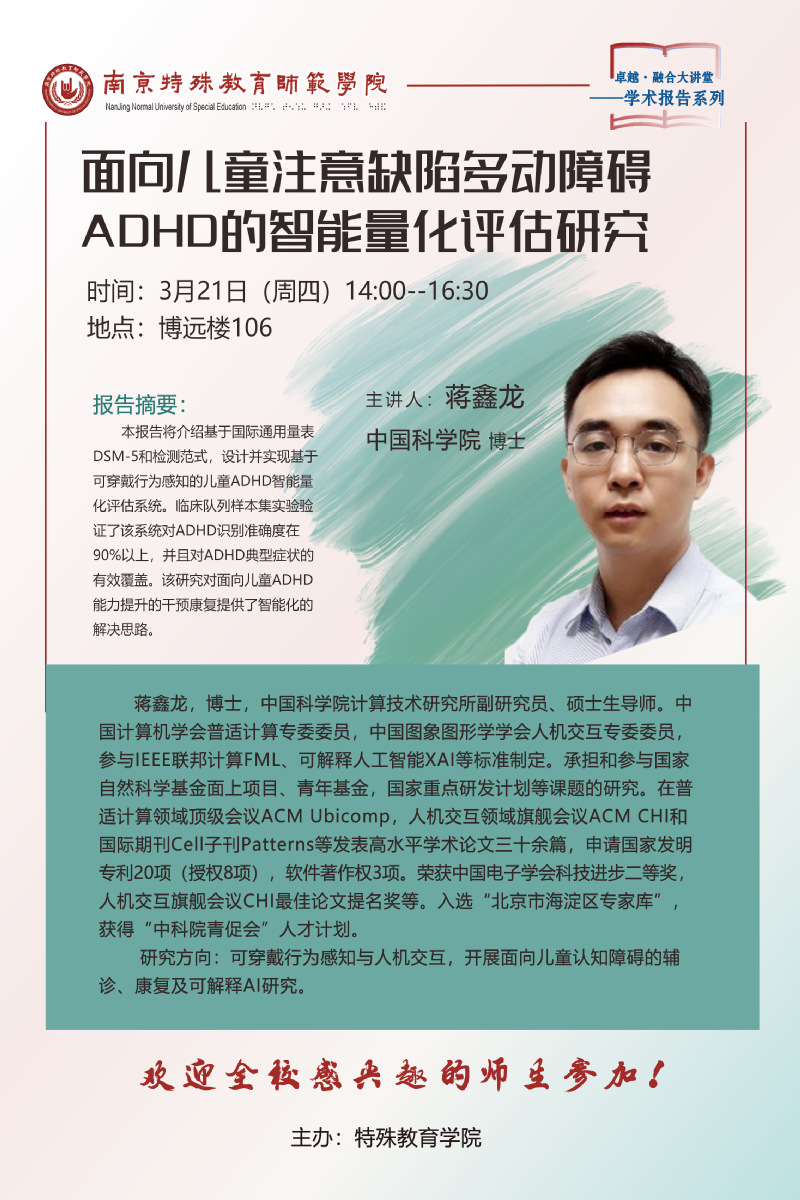 学术预告——面向儿童注意缺陷多动障碍ADHD的智能量化评估研究