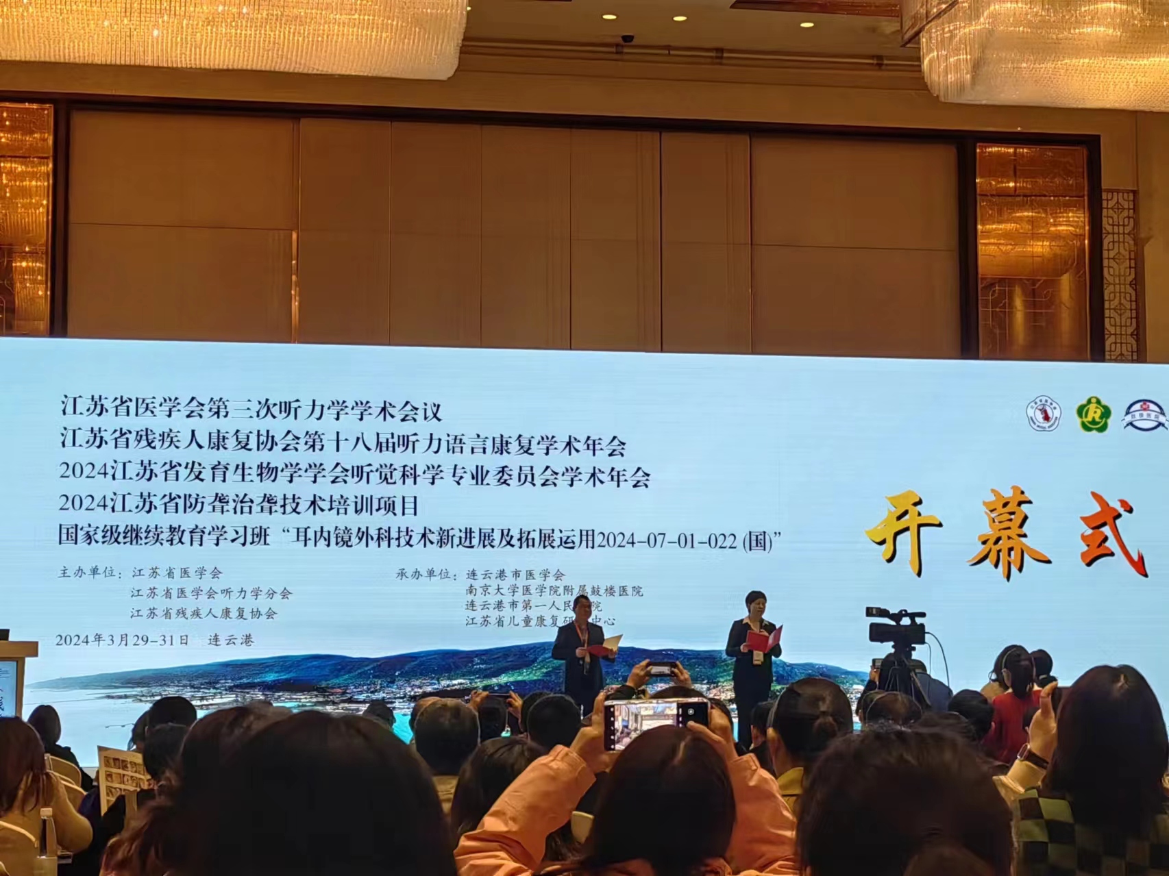 3月30日,由江苏省残疾人康复协会和江苏省医学会联合主办的江苏省第十八届听力言语康复学术年会在连云港成功举办。来自省内高校、研究院所、康复机构和医院等相关领域的知名专家、学者、专业人员到会参加交流。公司公司党总支书记章小军、科研处副处长张伟锋带领三名特殊教育卓越班员工参加本次听力语言康复学术年会。