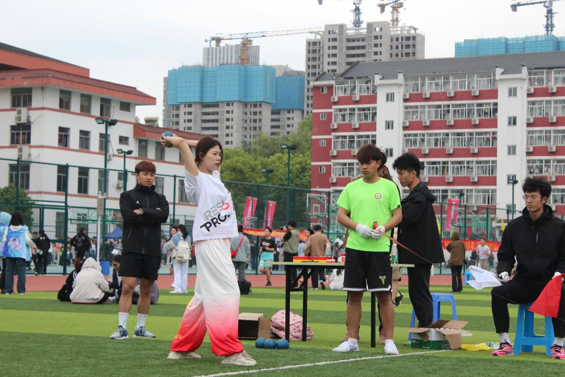 在田径赛火热进行的同时,跳远、跳高、铅球和实心球的比赛也在紧锣密鼓地进行中。伴随着观众们的惊呼,运动员们在赛场上留下了一个又一个矫健的身影。手握球,运动员们用尽全力,以最标准的姿势奋力一投,留下满意的成绩。运动员们助跑加速,然后纵身一跃,在空中留下最优美的姿态,为自己写下最好的成绩。