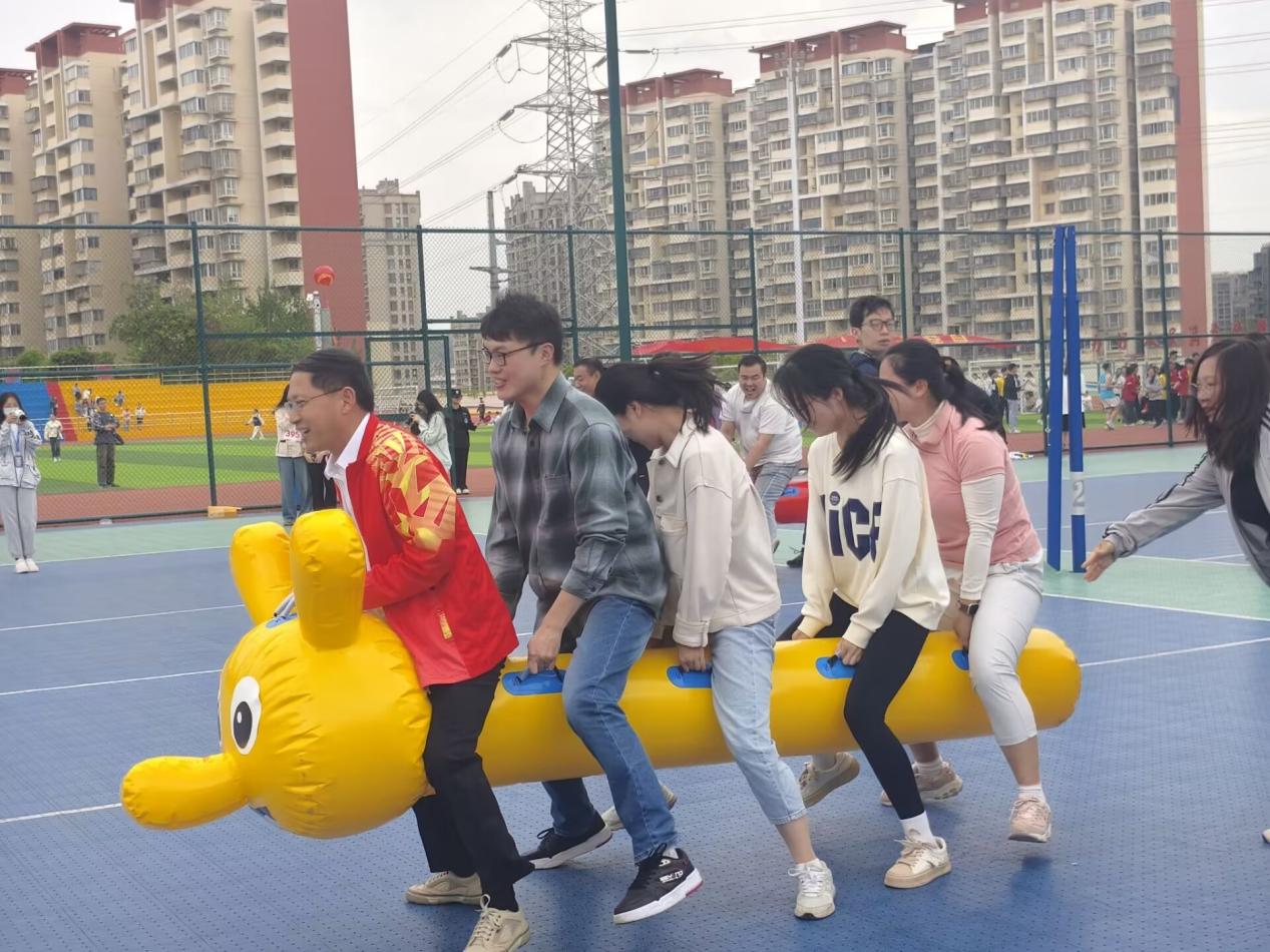 正值春日,暖风拂面,花香袭人。为丰富教职工精神文化,营造团结和谐的校园氛围,bevictor伟德于4月19日上午举行教职工趣味运动会。本次运动会中,公司老师积极参与,团结协作,取得了良好的成绩。“充气毛毛虫”游戏中,老师们喊出口号,团结一致,一步步前进。比赛中充满了欢声笑语,老师们脸上洋溢着笑容,员工们也在一旁加油打气。