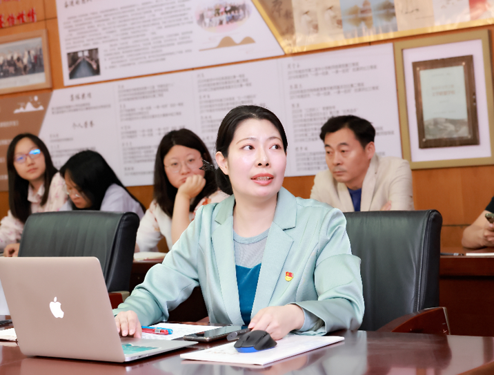 由公司教师第二党支部书记史玉凤老师介绍两校合作研制手语教材的编写背景与进展情况,感谢南京聋校领导与老师的大力支持,推动了手语翻译专业建设方面的深度合作。