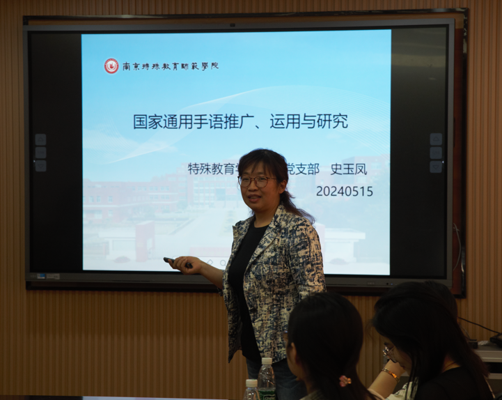 会上,由南京聋校文科党支部“中国好人”陈燕老师分享主题为“诗文随世运,无日趋新”的微党课,向大家展示了聋校在中国传统诗词文化传承中的创新举措与教育成果,传递了文化传承的创新精神。