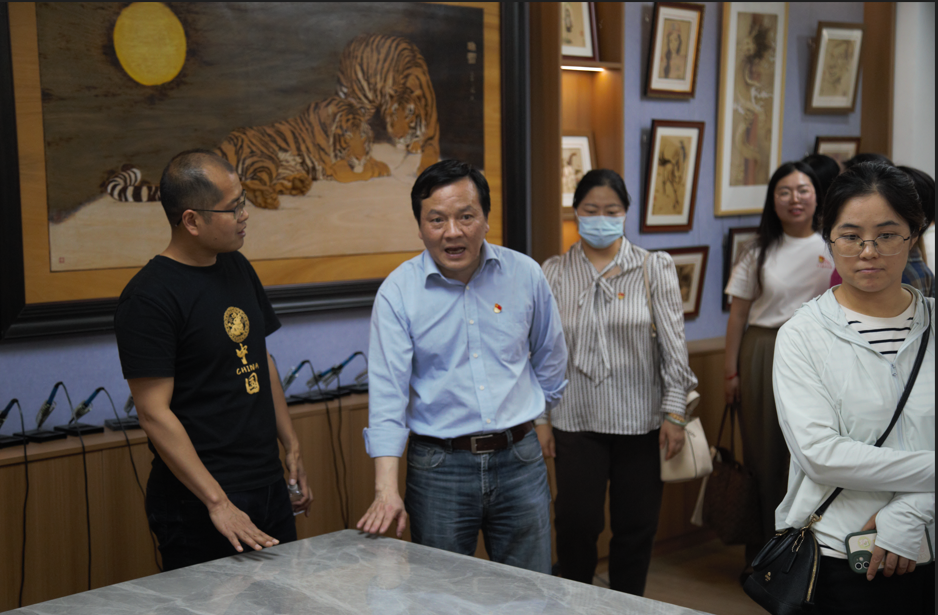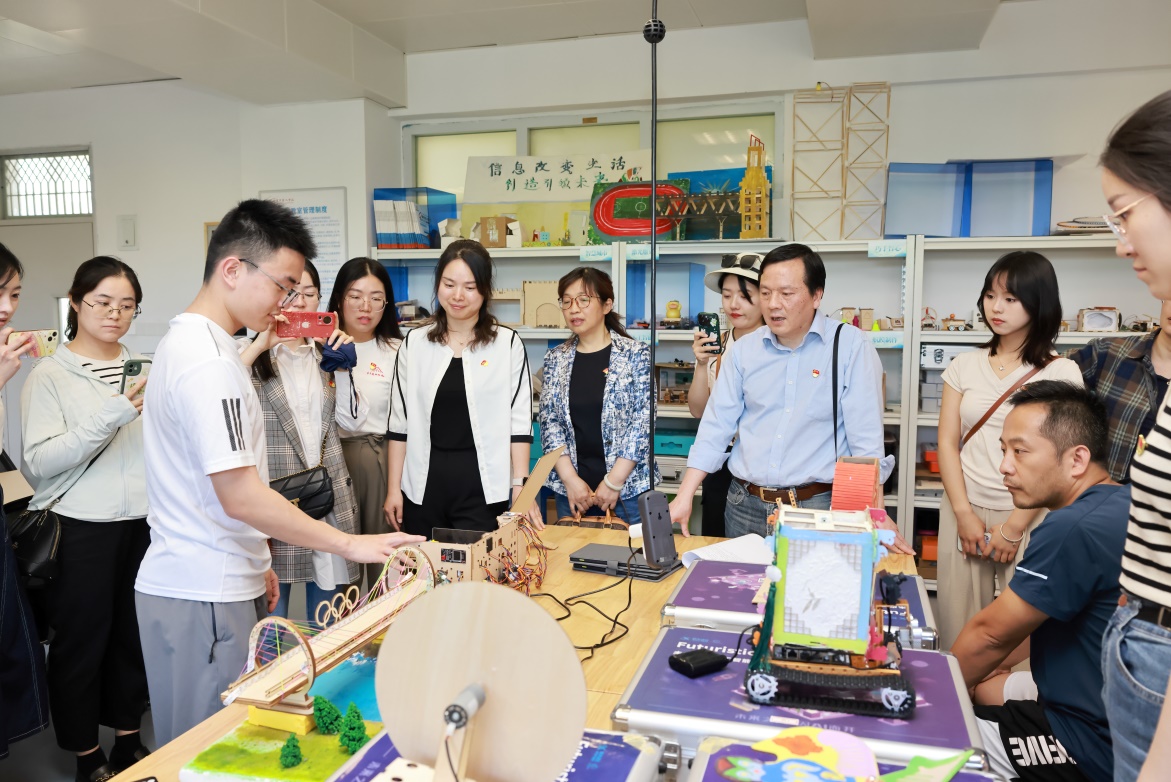 南京市聋人公司文科党支部陆盼盼书记、党务专干周秋红主任首先迎接了公司师生党员们,并带领大家先后参观了家政室、桂园、美术课程基地、诗词文化基地,观看了聋生各类美术作品、手工作品、3D打印作品、编程作品等。师生党员们纷纷感慨聋人公司的校园文化和育人智慧,以及聋生的学习能力和创造潜能。