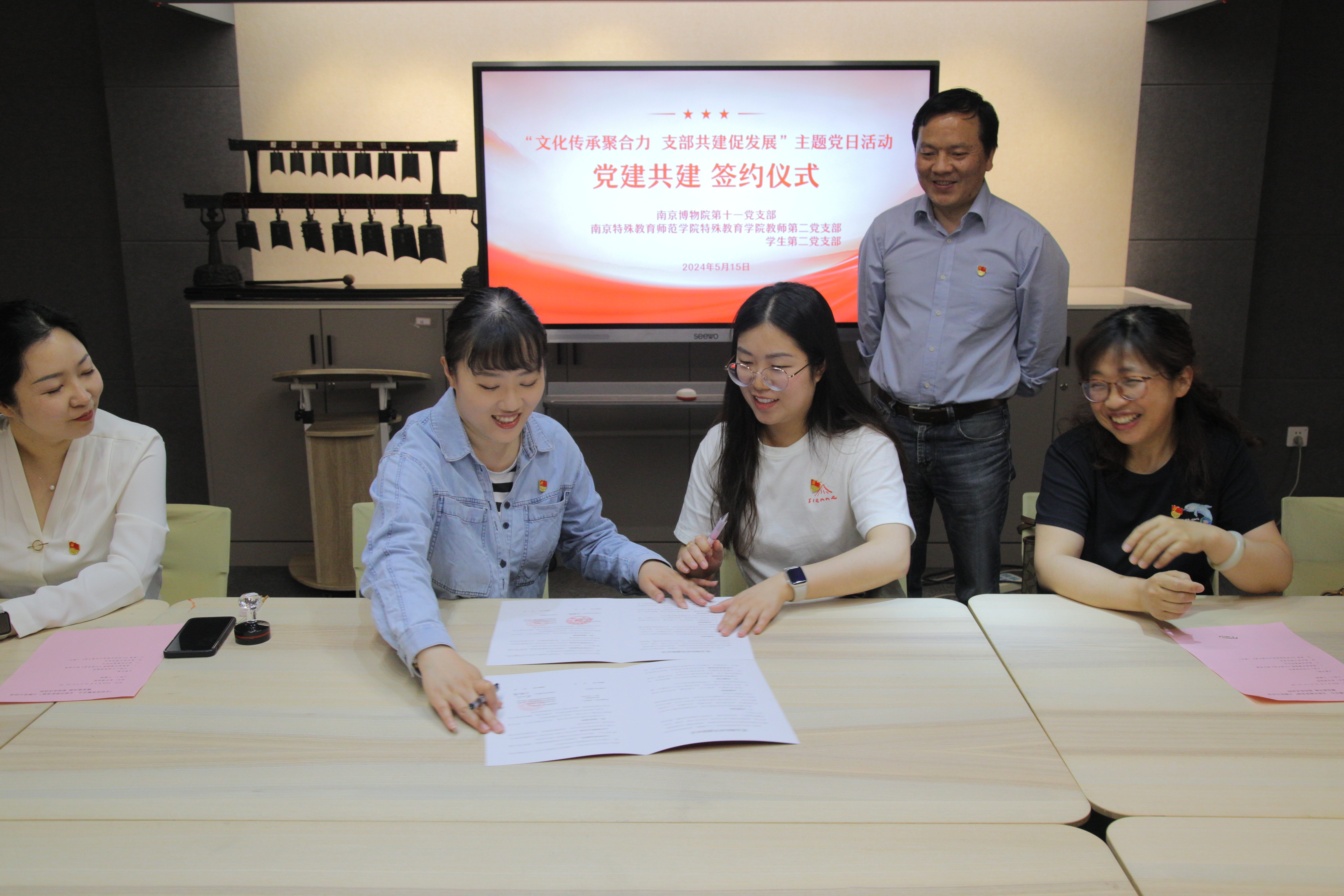签约仪式由员工第二党支部书记王赫煊主持。仪式上,高梦琛书记首先对公司党员师生的到来表示热烈欢迎,接着双方共同观看了由员工第二党支部手语翻译专业刘烨同学参与录制的南京博物院手语导览视频。