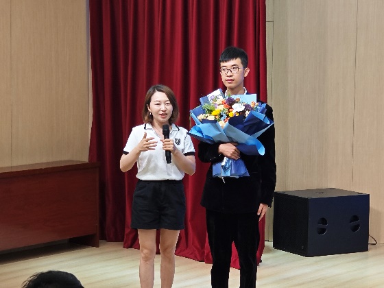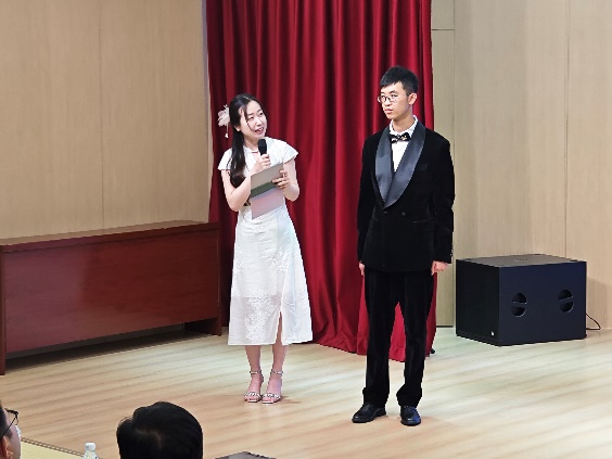 张敏讷老师满怀深情地分享了她陪伴黄禹雄同学在音乐道路上的两个温馨小故事,这些故事触动了在场每一位观众的心灵。同样,讲授《现当代文学》课程的国丽云老师也为他送上了真挚的祝福,展现了师生间深厚的情谊。