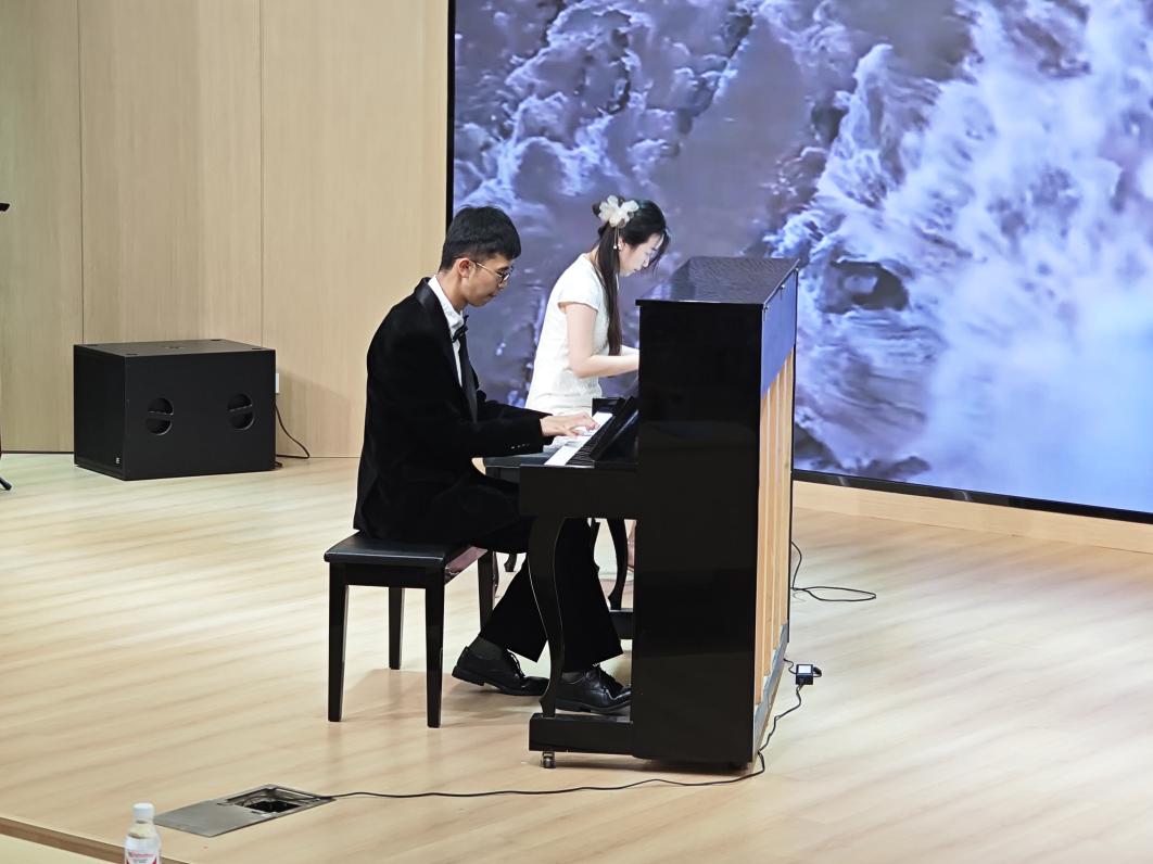 音乐会上,黄禹雄同学演绎了十多首波兰作曲家肖邦的经典作品,他的琴声如涓涓细流,又如磅礴大海,将肖邦作品中的深情与自由表达得淋漓尽致。观众们被他精湛的演奏深深打动,更为他对音乐的投入和热爱所感动。音乐会的压轴曲目,是张敏讷老师和黄禹雄同学联袂演奏的双钢琴作品《黄河颂》。这首曲子将整场音乐会推向了高潮,不仅展示了师生的默契配合,更是对融合教育成果的完美呈现。