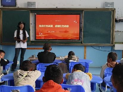 弘扬爱国主义精神,培育民族团结力量。支教团队将爱国主义教育作为此次支教的重要内容之一。通过组织升国旗仪式、讲述红色故事、播放爱国影片等形式,志愿者们激发了孩子们的爱国情怀,帮助他们树立起对祖国的自豪感和责任感。在《<歌唱祖国>手语教学》《认识红旗》《传承红色基因,赓续红色血脉》等宣讲爱国主义的课程中,孩子们认真聆听志愿者老师的讲解,积极参与讨论,在心中播下了爱与责任的种子,激发了孩子们爱党爱国的信念。