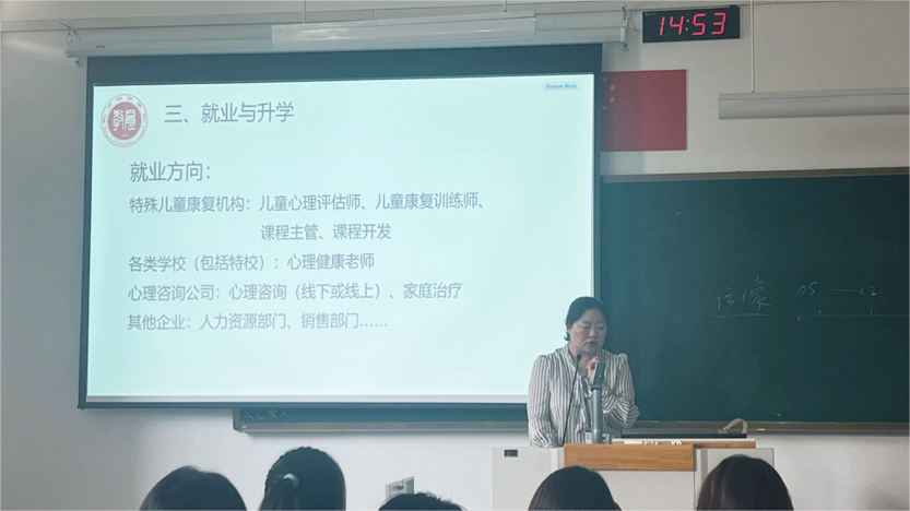 在谈到应用心理专业的就业前景时,黄晶晶老师表现出了极大的信心。她指出,随着社会的发展和人们对心理健康重视程度的提高,应用心理专业的就业领域已经越来越广泛。毕业生不仅可以在教育领域发光发热,还可以在医疗、企业等多个领域找到自己的用武之地,为社会贡献自己的专业力量。这一番话极大地鼓舞了在场的同学们,让他们对自己的未来充满了期待。