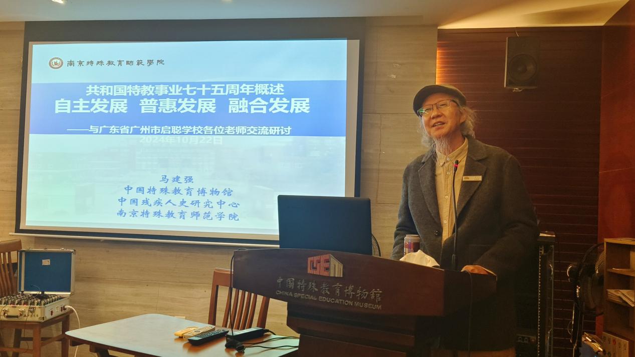 学术参访环节是此次培训的一大亮点。第一站,学员们参观了中国特殊教育博物馆。马建强馆长以“共和国特教事业七十五年概述:自主发展、普惠发展、融合发展”为题进行了精彩分享,使学员们对特殊教育的发展脉络有了更为清晰的认识。馆内丰富的展陈让学员们对特殊教育发展历史有了更为直观的了解。
