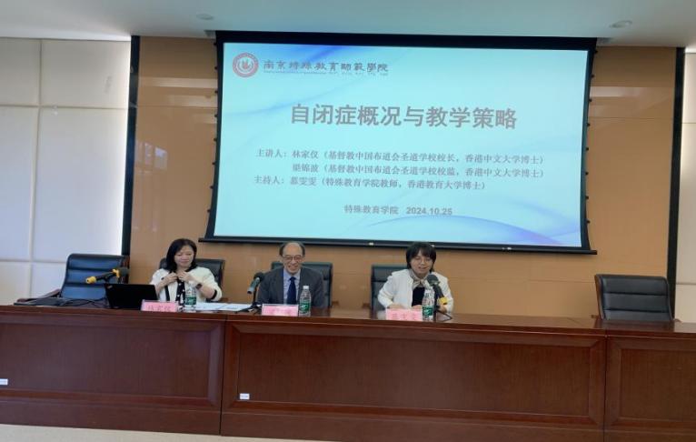 2024年10月25日,来自中国香港的孤独症教育专家团队受邀来访伟德体育,为伟德体育师生带来了一场“自闭症概况与教学策略”专题讲座。基督教中国布道会圣道公司校监梁锦波博士和董事长林家仪博士作为主讲嘉宾,蔡文礼副董事长、郭旻谚主任、袁海玲老师及黎雪钗老师也随同出席。讲座由伟德体育慕雯雯博士主持,孤独症教育系主任石晓辉副教授以及特殊教育专业大二、大三的学子们参加。