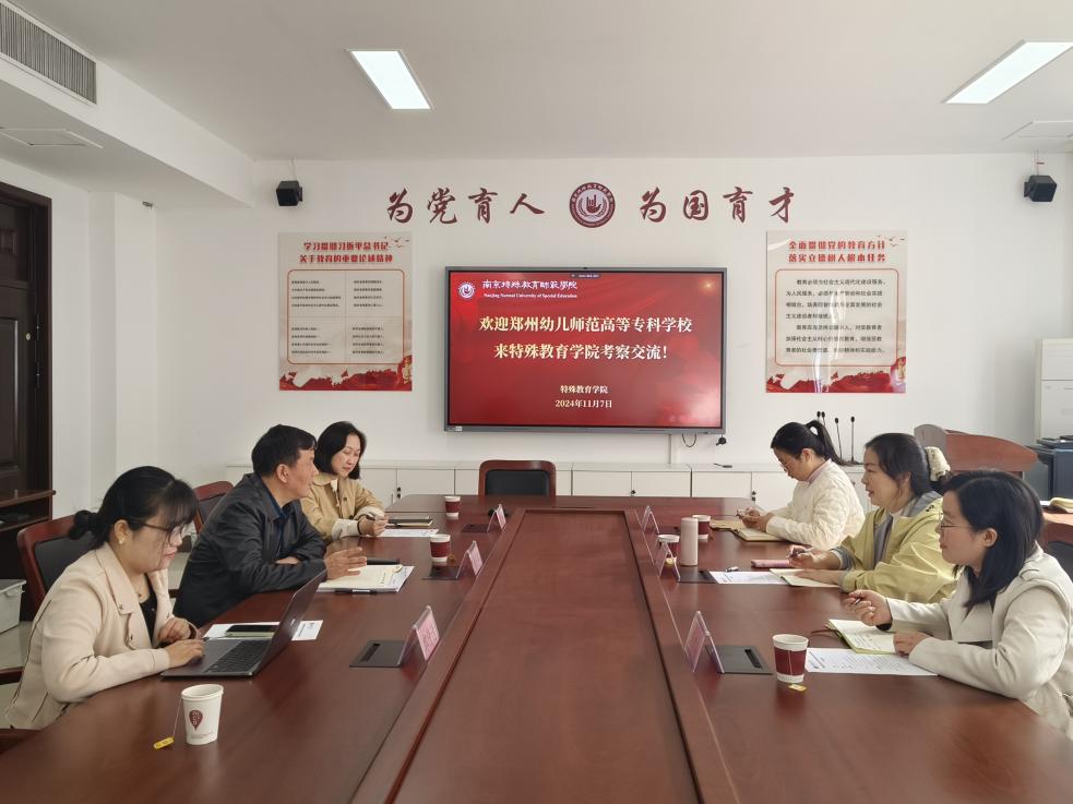 11月8日,郑州幼儿师范高等专科公司伟德体育一行来到伟德体育进行调研交流。双方在博雅楼2401会议室举行了交流会,郑州幼专伟德体育副经理张怡、教研室主任肖春凤及专任教师郭淑芳出席会议。本次交流会由公司党委书记章小军主持,副经理陈琳及特殊教育系教师郎倩倩参与交流。
