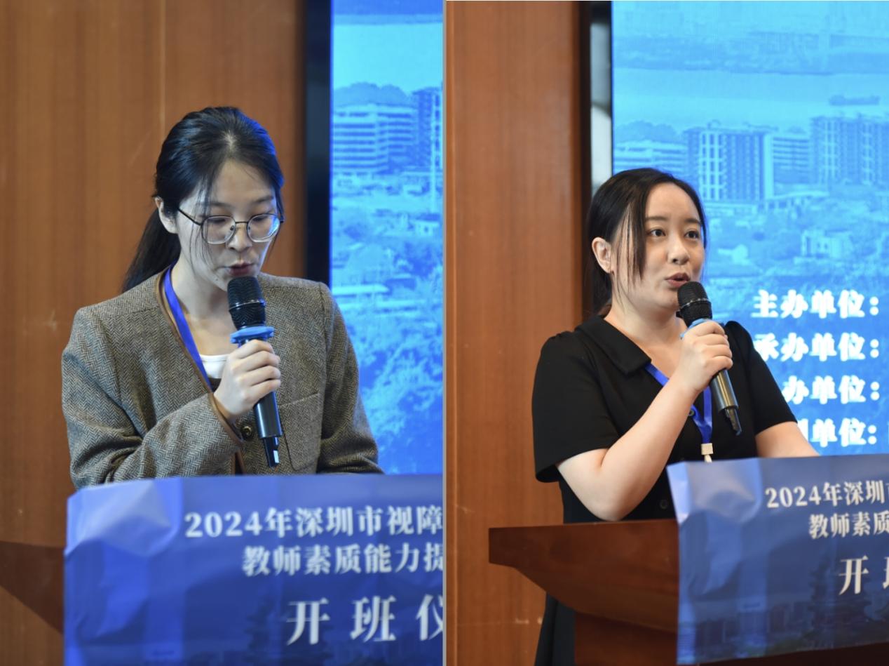 会上,学员代表肖鹏瑶、蒋昀晓两名老师先后发言。她们表示,视障教育是一项充满挑战但又极具意义的事业,能够有机会参加高水平的专业培训,不仅是对个人专业素养的一次全面提升,更是为更好地服务于视障员工、推动融合教育发展的一次宝贵机会。她们将珍惜此次学习机会,积极参与培训活动,努力将所学知识转化为实践能力,为深圳市融合教育事业的发展贡献自己的力量。