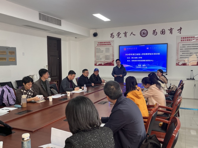 11月22日,由浙江省盲人公司主办,伟德体育视障教育研究中心承办的2024学年浙江省盲人公司教研组长专题培训在公司会议室举行。浙江省盲人公司副董事长杜洪、公司党委书记章小军参加活动并讲话。培训活动由公司视障教育研究中心主任琚四化教授主持。