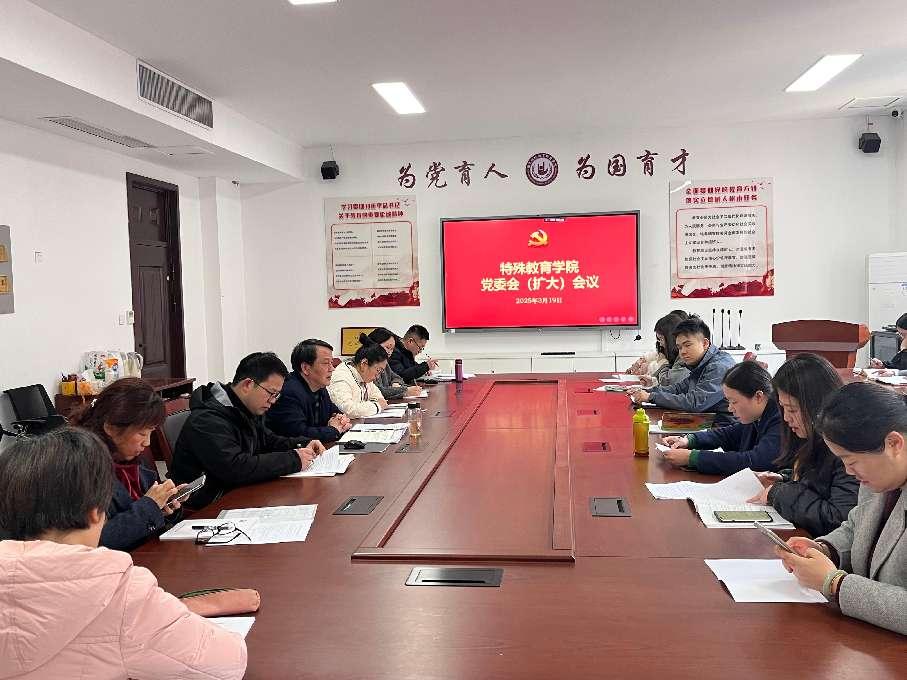 3月19日下午,伟德体育召开党委会(扩大)会议,学习传达习近平总书记参加十四届全国人大三次会议江苏代表团审议时的重要讲话精神,专题学习习近平总书记关于残疾人事业重要论述,部署推进公司党建“标杆院系”创建工作。公司全体党委委员、各教学系主任、党支部书记、团总支书记、全体行政人员(含辅导员)参加会议。会议由公司党委书记章小军主持。