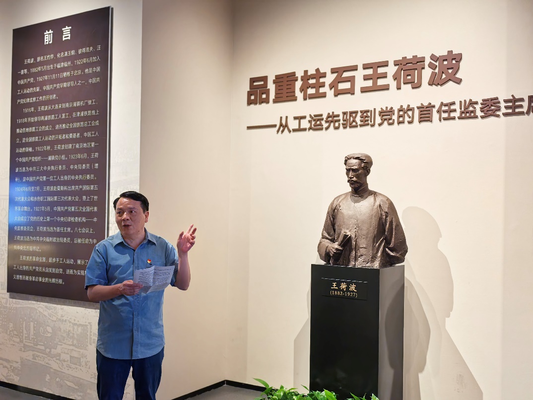 在王荷波同志的雕塑前,公司党委书记为大家分享了初心故事,讲述王荷波从浦镇机厂走出的工人领袖中央监委首任主席的革命轨迹,强调王荷波用生命诠释的‘品重柱石’风范,正是特教工作者所需要的精神钙质。王荷波(1882-1927年),原名王灼华,福建福州人,19226月加入中国共产党,成为南京地区第一个共产党员1927年参加党的八七会议,当选临时中央政治局委员,中共中央北方局书记。同年因叛徒出卖遇害,终年45岁。他是中国工人运动的杰出先驱,是我党第一位工人出身的中央委员,第一个纪律检查机构中央监察委员会的首任主席。在王荷波的红色生涯中,他始终严于律己,初心不改,被称作“品重柱石”。在中央工作期间,王荷波始终保持着艰苦朴素、廉洁奉公的革命家作风,备受尊敬。在生命的最后时刻,高呼“中国共产党万岁”,他牺牲前唯一嘱托,是请求党组织对他的子女加强革命教育,千万别走和他相反的道路。荷风飘万里,波光映千秋。王荷波同志短暂而伟大的一生,许党报国的光辉事迹和高贵品质成为宝贵精神财富,为后人永远缅怀铭记,那一颗至死不渝的初心激励着我们薪火相传,赓续绵延。