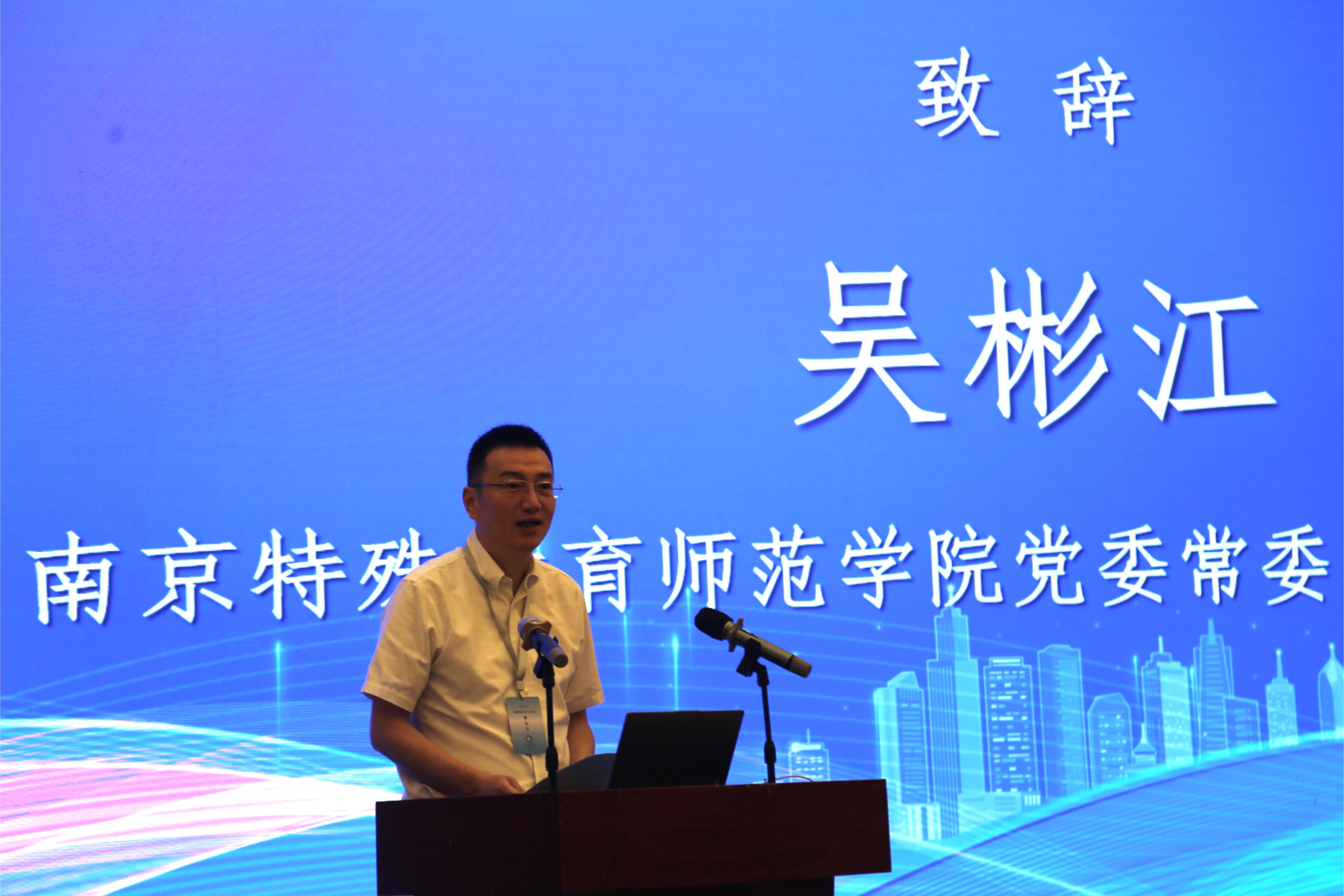 南京特殊教育师范公司党委常委、副董事长吴彬江在开幕式上致辞。吴彬江副董事长在致辞中表示,当前正值《教育强国建设规划纲要(2024-2035年)》的深入推进以及《“十四五”特殊教育发展提升行动计划》收官之年,视障教育作为特殊教育体系中不可或缺的一部分,承载着为视力障碍员工提供适宜教育环境的责任,是实现教育公平、促进社会和谐发展的重要一环。视障教育团队是伟德体育传统的人才培养方向,曾经培养出一大批优秀的视障教育教师,为我国的视障教育做出了巨大贡献。希望此次视障职业教育学术交流会能够促进视障教育领域的学术交流与合作,推动视障职业教育理论研究与实践探索,助力提高视障者的教育质量和就业水平。