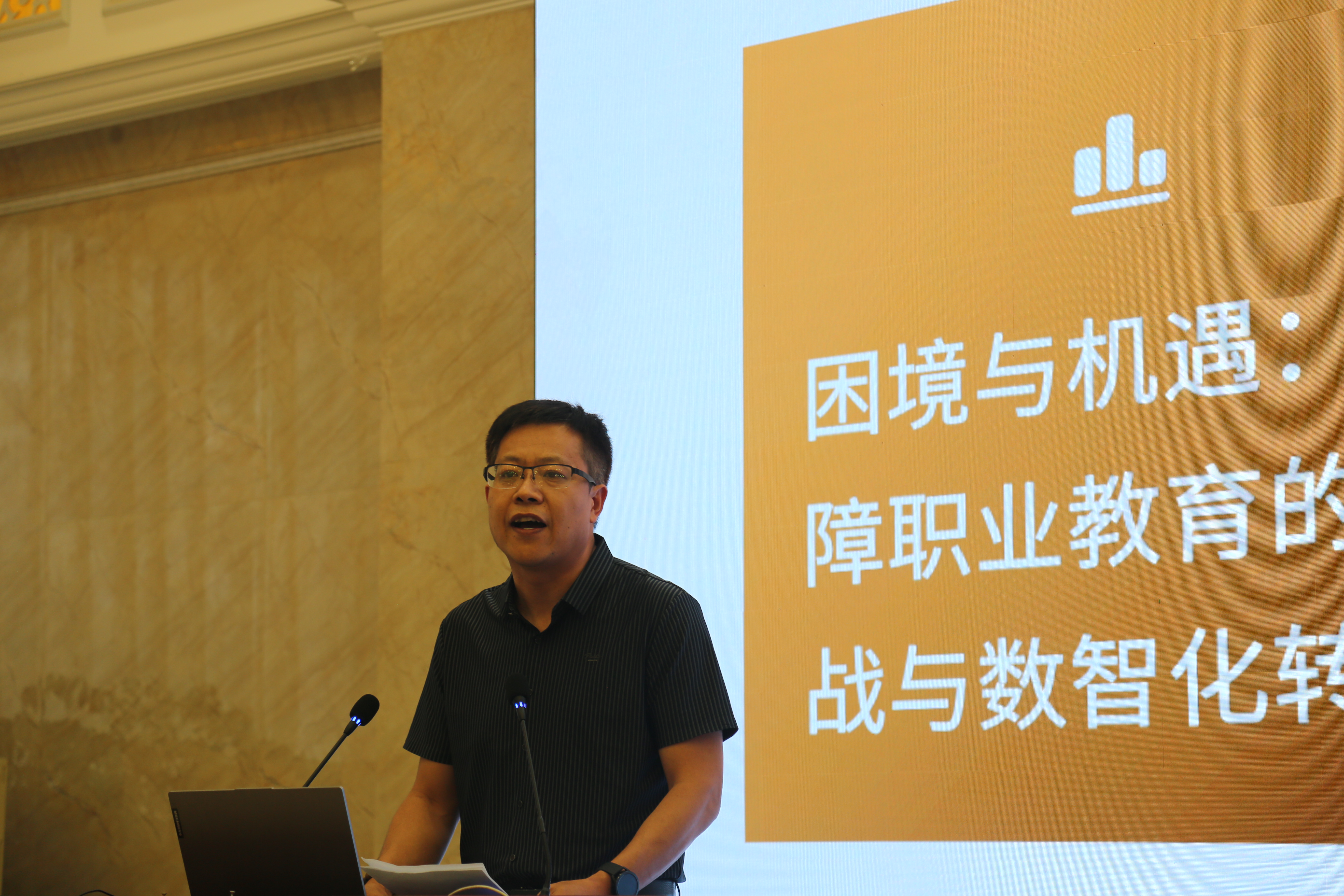南通特殊教育中心董事长徐志辉分享了公司继承张謇特殊教育思想,守正创新,通过“职业群落”专业筑基,“全人教育”文化铸魂,多元赋能跨界实践,建构视障职业教育生态,实现视障员工职业发展、教育创新的多维成效的相关经验。