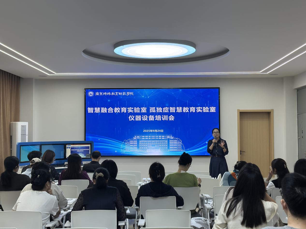 2025年9月24日下午,伟德体育成功举办了“智慧融合教育实验室与孤独症智慧教育实验室设备培训会”。本次培训由何燕春副经理主持,特邀三家企业的技术专家进行现场讲解与指导,特殊教育系、孤独症教育系、应用心理学系的全体教师以及手语翻译系部分教师参与培训。培训会聚焦于两个智慧实验室的核心设备功能、操作流程及实践应用,通过理论讲解、现场演示与实操练习相结合的方式,系统提升参训教师对智能化设备的理解与操作能力。何副经理在开场致辞中强调,掌握先进设备是推动教学创新与科研突破的重要支撑,期望教师们能够充分利用实验室资源,将技术优势转化为育人实效。