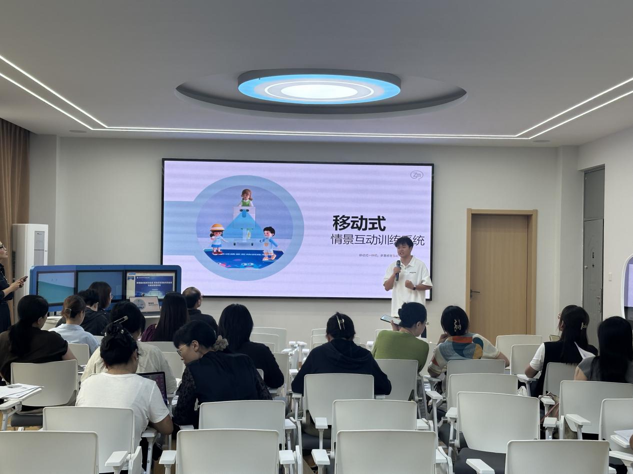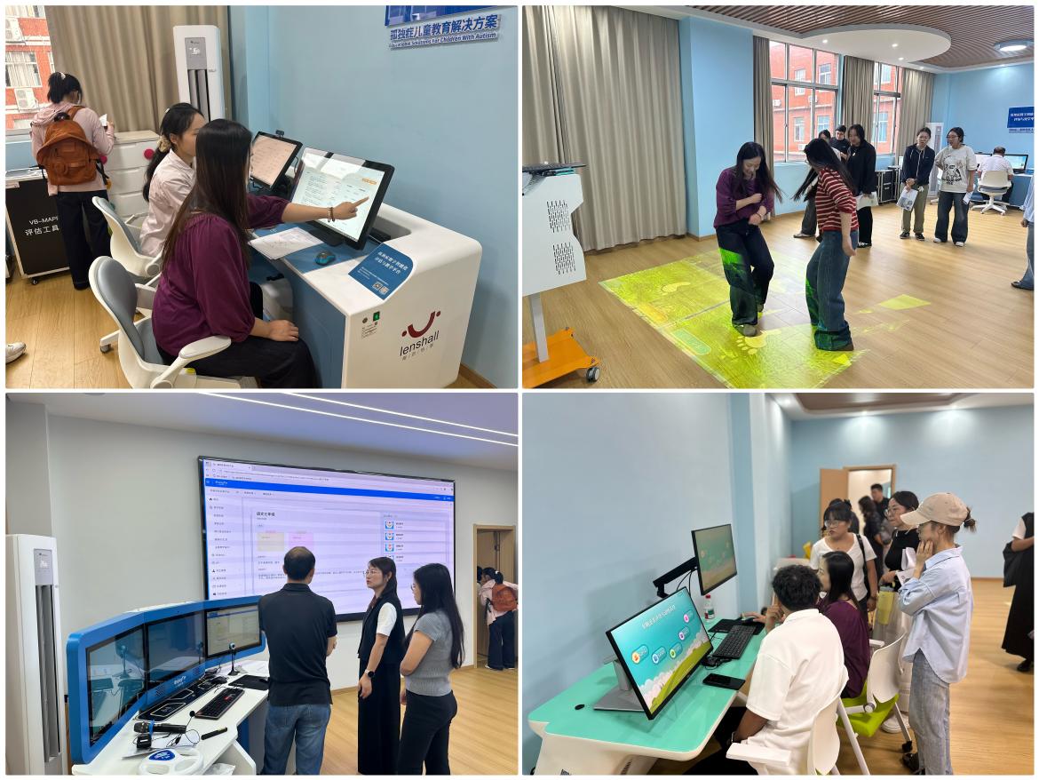 在随后的现场演示与实操练习环节中,参训教师分组对各类设备进行了深入体验与操作。大家或围聚在智能交互屏幕前,尝试创设多元化教学情境;或仔细研究新型评估工具,与讲师深入探讨施测细节;或在情景互动设备中亲身感受科技对激发儿童学习动机的独特魅力。通过亲自动手,教师们不仅迅速熟悉了操作流程,更聚焦于教学实际,就如何将智能工具无缝嵌入课堂、如何精准解读数据以制定个性化干预方案等核心问题,与培训人员展开了卓有成效的研讨,成功实现了从理论认知到实践应用的关键跨越。