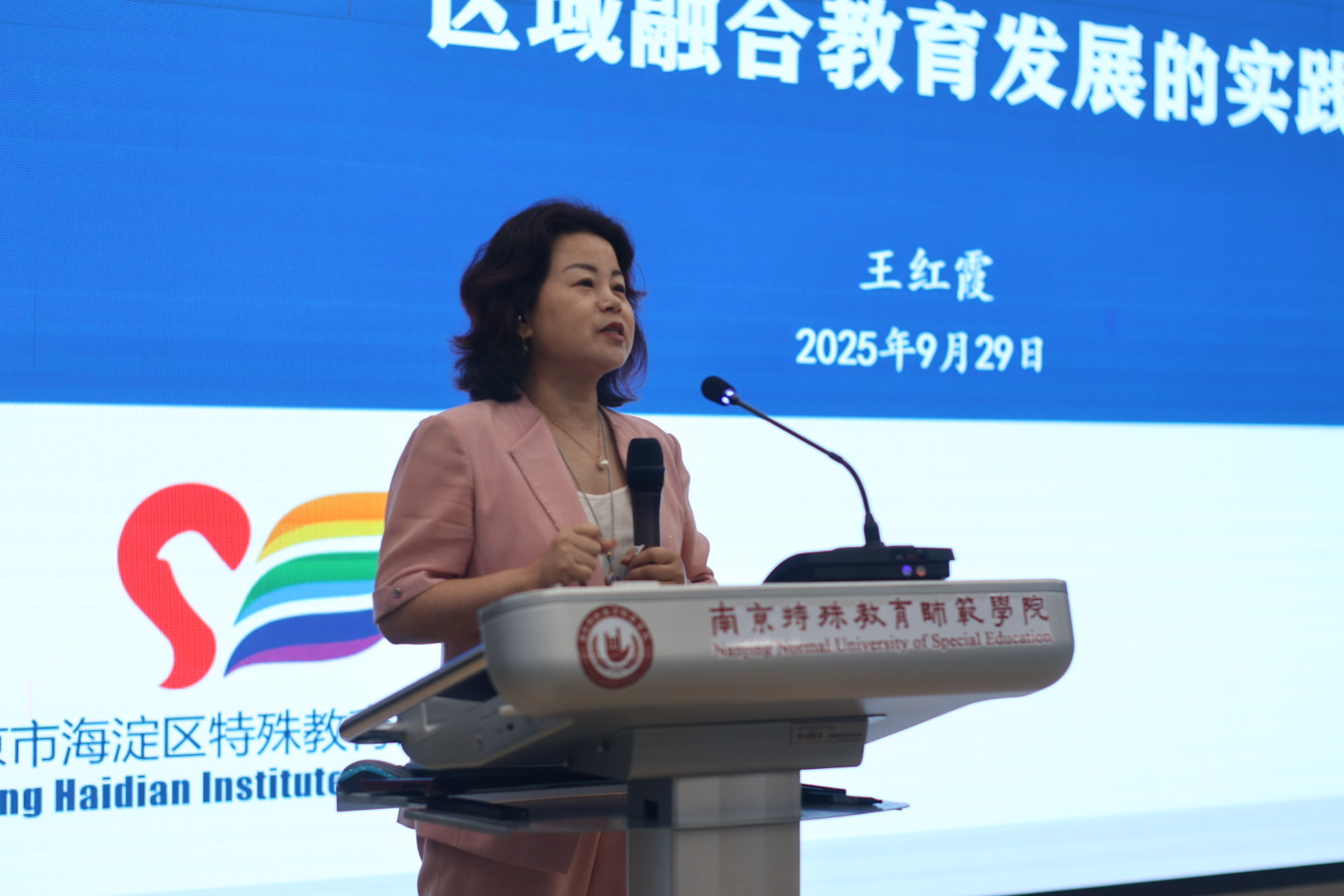 王红霞董事长以“推进普惠全覆盖 构建发展共同体”为题,聚焦融合教育的区域实践,系统介绍了海淀区融合教育的发展路径与实践经验。她从专业团队能力建设与优质教育资源供给两个维度出发,深入剖析了公司在融合教育背景下提升专业服务质量的策略与方法。王董事长的报告兼具前瞻性与实操性,有效激发了师生对理论知识如何转化为实践动力的深入思考。